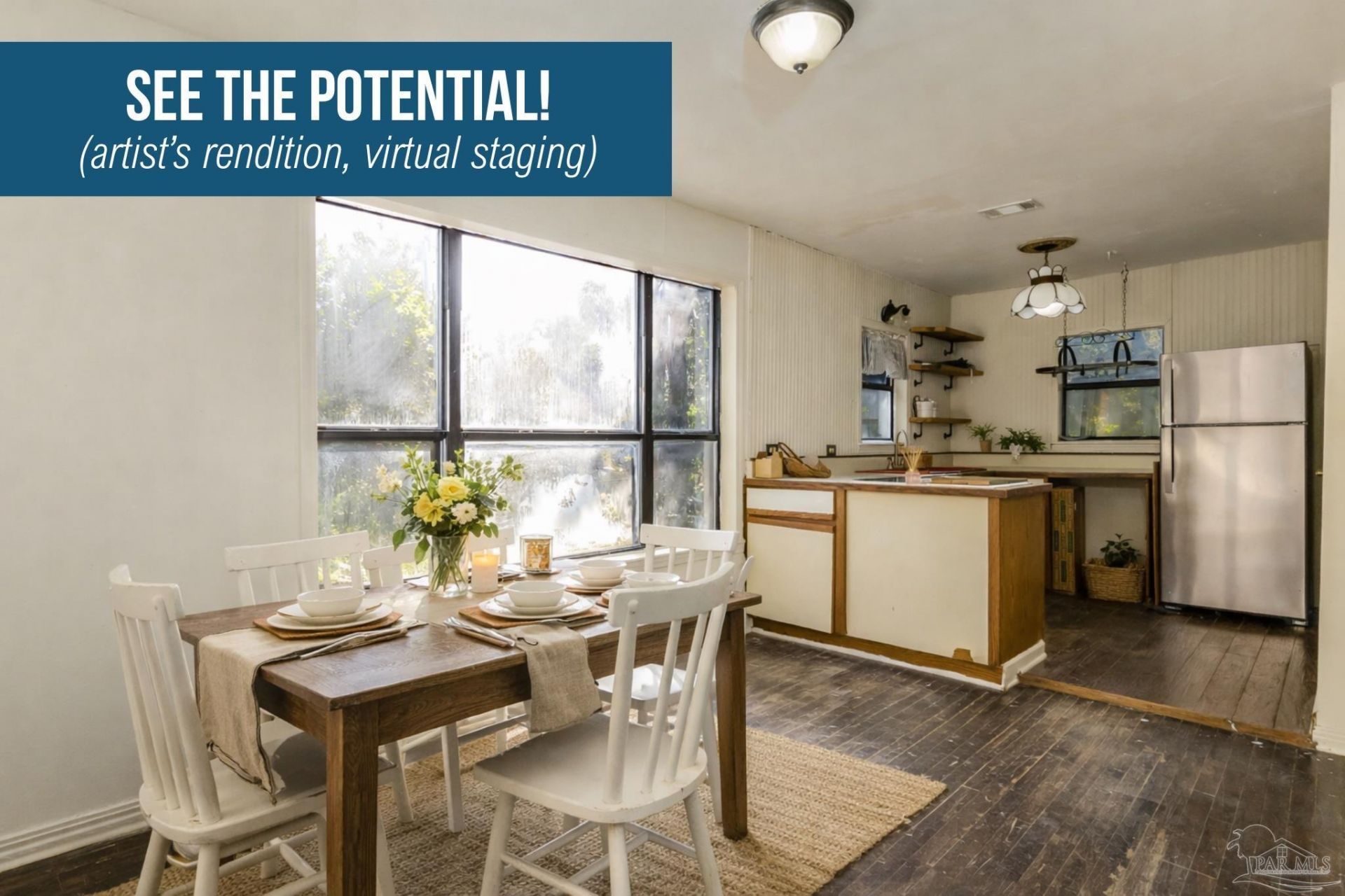 Charming Cottage with Greenhouse & Versatile Outdoor Spaces, This inviting 2-bedroom, 1-bath home offers classic cedar cottage charm paired with functional outdoor features. Nestled beneath mature trees, the property showcases new cedar siding on the front of the home and floors ready for your personal touch. Inside, the layout is simple and efficient with abundant natural light throughout. The eclectic kitchen features vintage cabinetry and an older stove, while the living areas feel open and comfortable, highlighted by large windows. The bathroom retains its original character and functionality, ready to enjoy as-is or update to suit your...read more