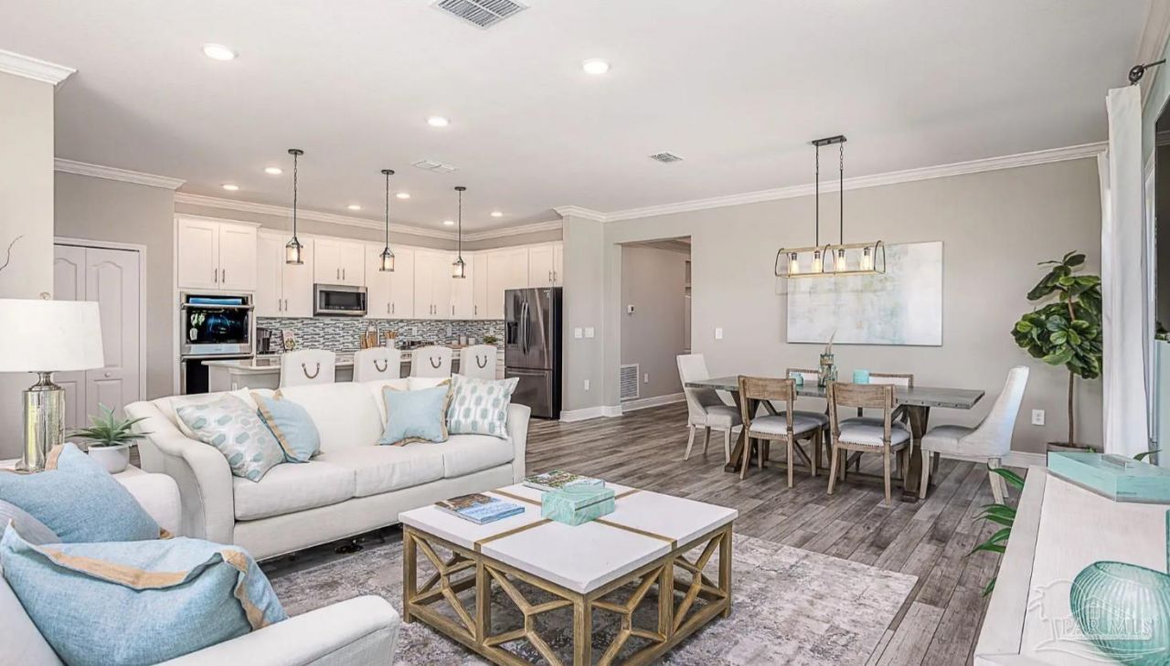 Step inside the Miramar, boasting 9'4' ceilings throughout, the home's open floor plan seamlessly blends style & functionality, flowing effortlessly from room to room. The great room is bathed in natural light, creating a warm & welcoming ambiance. Triple-panel, floor-to-ceiling patio doors open to a covered deck, offering the perfect Florida living experience for enjoying the outdoors year-round. The chef-inspired kitchen is both beautiful & efficient, featuring a large island with quartz countertops, stainless steel appliances including a gas wall oven and gas cooktop, & a spacious pantry-ideal for meal prep, entertaining, or casual dining....read more
