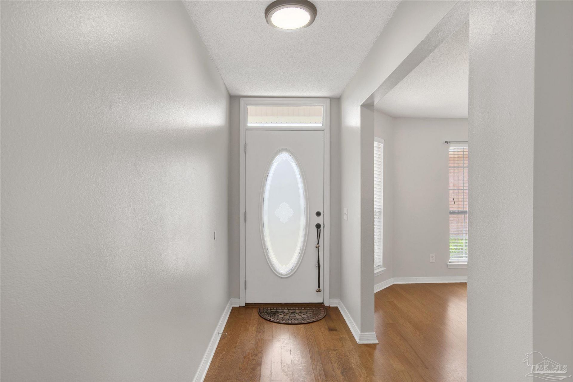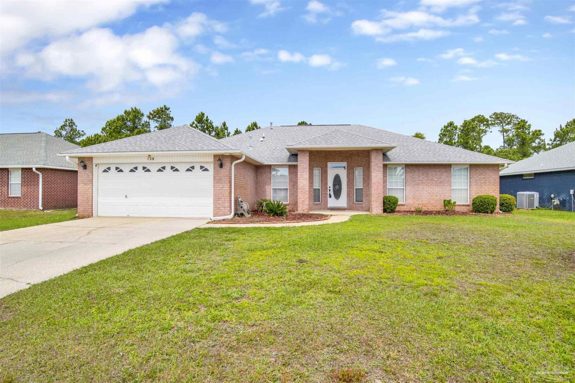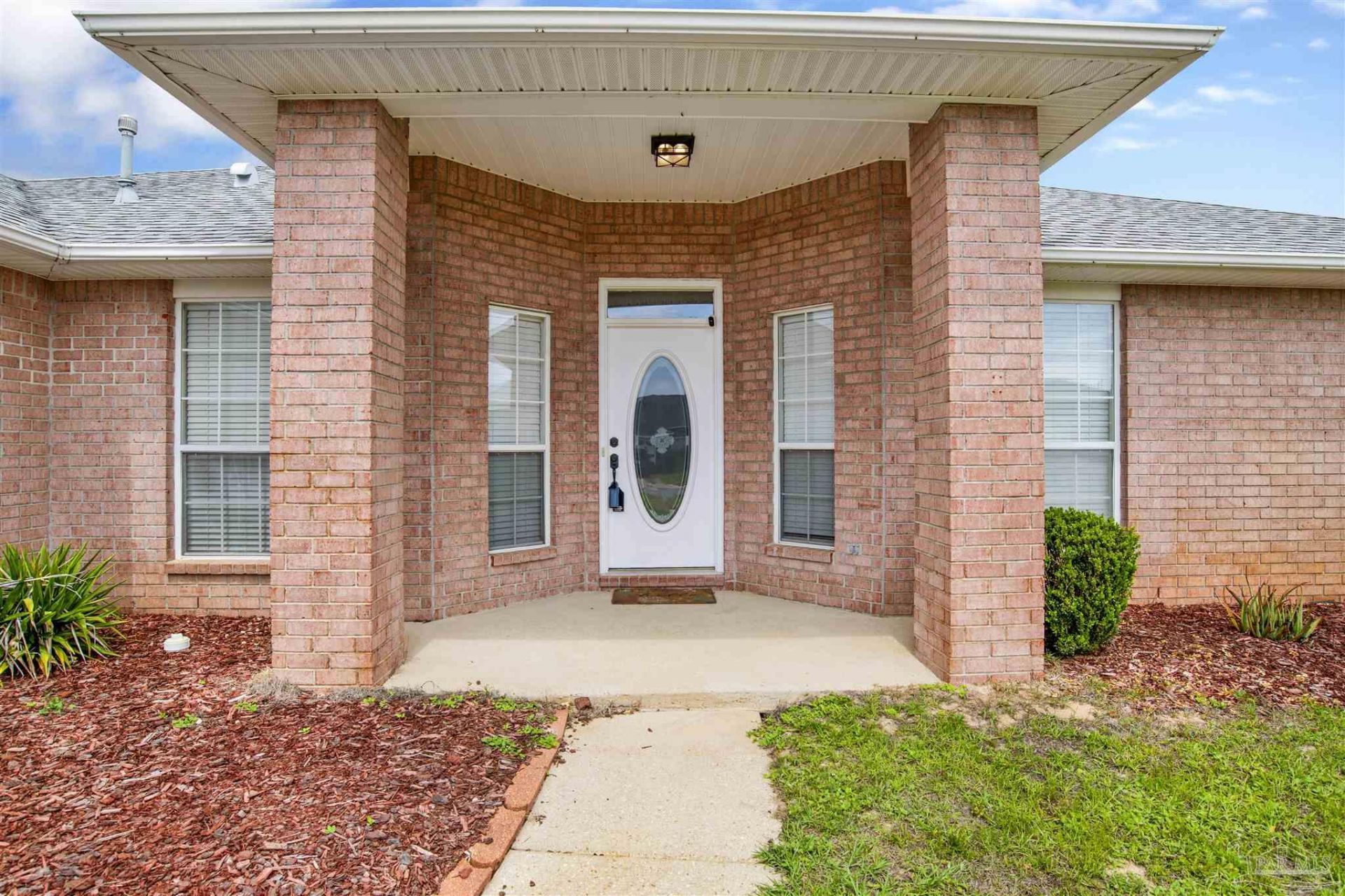 Move-in ready and located just 15 minutes from Pensacola's white sand beaches-with no flood insurance required-this beautifully updated all-brick home offers privacy, efficiency, and a highly functional layout on a quiet dead-end street with underground utilities and streetlights. Inside, a grand entry opens to a spacious, light-filled floor plan featuring cathedral ceilings, hardwood flooring in the main living areas, tile in wet spaces, and like-new carpet in the bedrooms. The oversized great room includes a corner gas fireplace and sliding glass doors that bring in natural light and offer peaceful views of the green space behind the home....read more