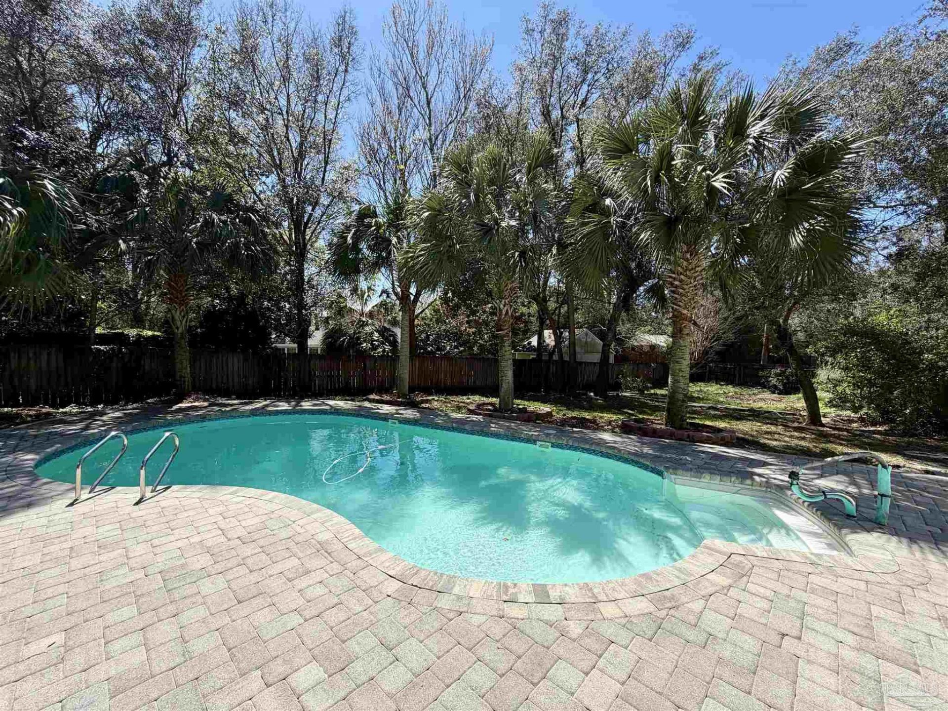 Come enjoy this lovely private pool and create your backyard oasis just in time for Summer! This large, brick Gulf Breeze home home sits on an oversized cul-de-sac lot in the quiet Bay Woods community. Enjoy the shade of the beautiful oak trees in the front yard will the kids safely ride bikes and scooters. Or head to back yard where the pool and brand new paver surround will provide a plethora of area for lounging, fire pit hangouts, yard games, and more. Oh and the large 10'x20' building provides a blank canvas for storage, fun, crafts, or more. The benefit of nearly half an acre .. all of that's less than half of the back yard. Create...read more