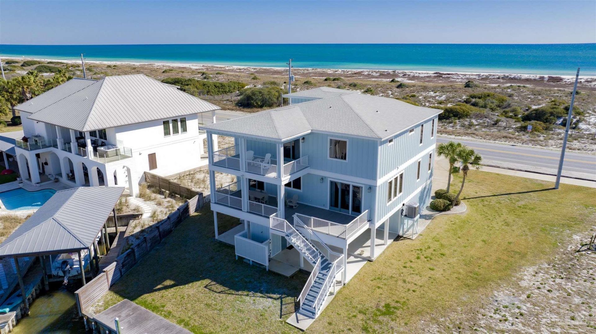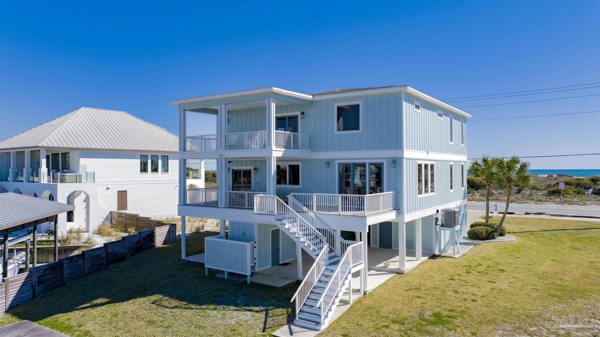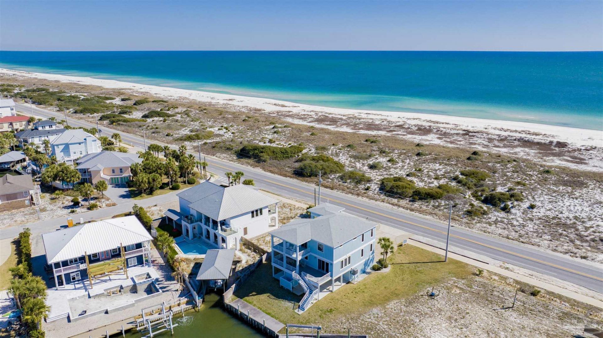 Waterfront living with boating access & Gulf views defines this home in Perdido Key Coves, where life on the water & time at the beach are both just steps away. A private dock sits right behind the home, making it easy to head out by boat, while unobstructed Gulf views from the front highlight the setting. Directly across the street, access to nearly two miles of protected State Park shoreline offers wide stretches of natural, sugar-white sand. This 4-bedroom, 4-bath residence with an additional half bath on the garage level offers a layout designed for flexibility, whether hosting guests, accommodating family, or maximizing rental potential....read more