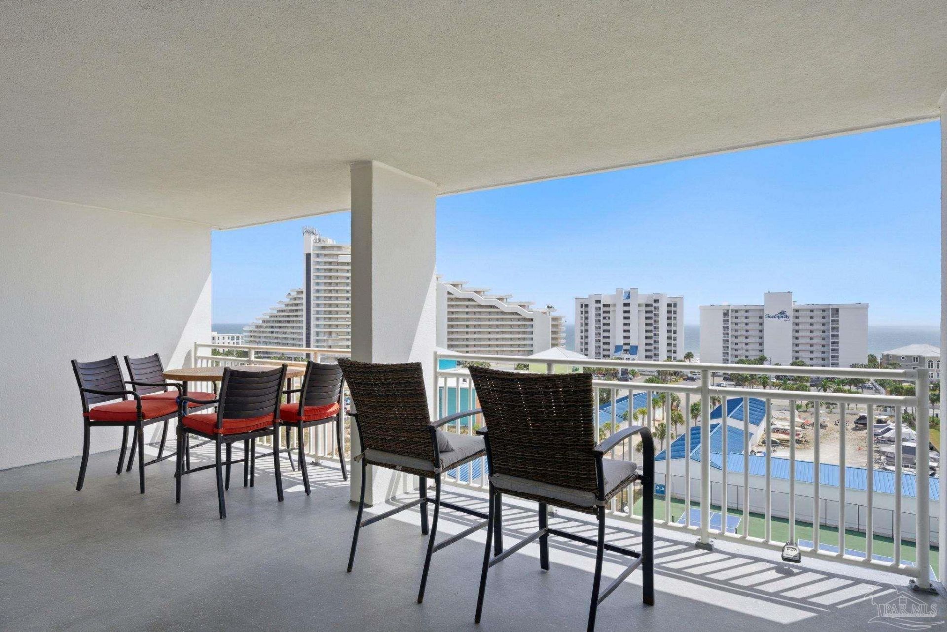 Welcome to your coastal retreat at SeaSpray in Perdido Key. This top-floor 2-bedroom, 2-bath residence offers sweeping, panoramic views of Ole River, Ono Island, Perdido Bay, and the Gulf. Positioned between the river and the beach, this furnished, turnkey condo delivers the best of both worlds with direct beach access just across the street and full boating amenities on-site. Inside, the light-filled, open-concept layout is designed for both comfort and entertaining. Expansive impact windows and sliding glass doors frame the water views and fill the space with natural light. The kitchen is well-appointed with granite countertops, stainless...read more