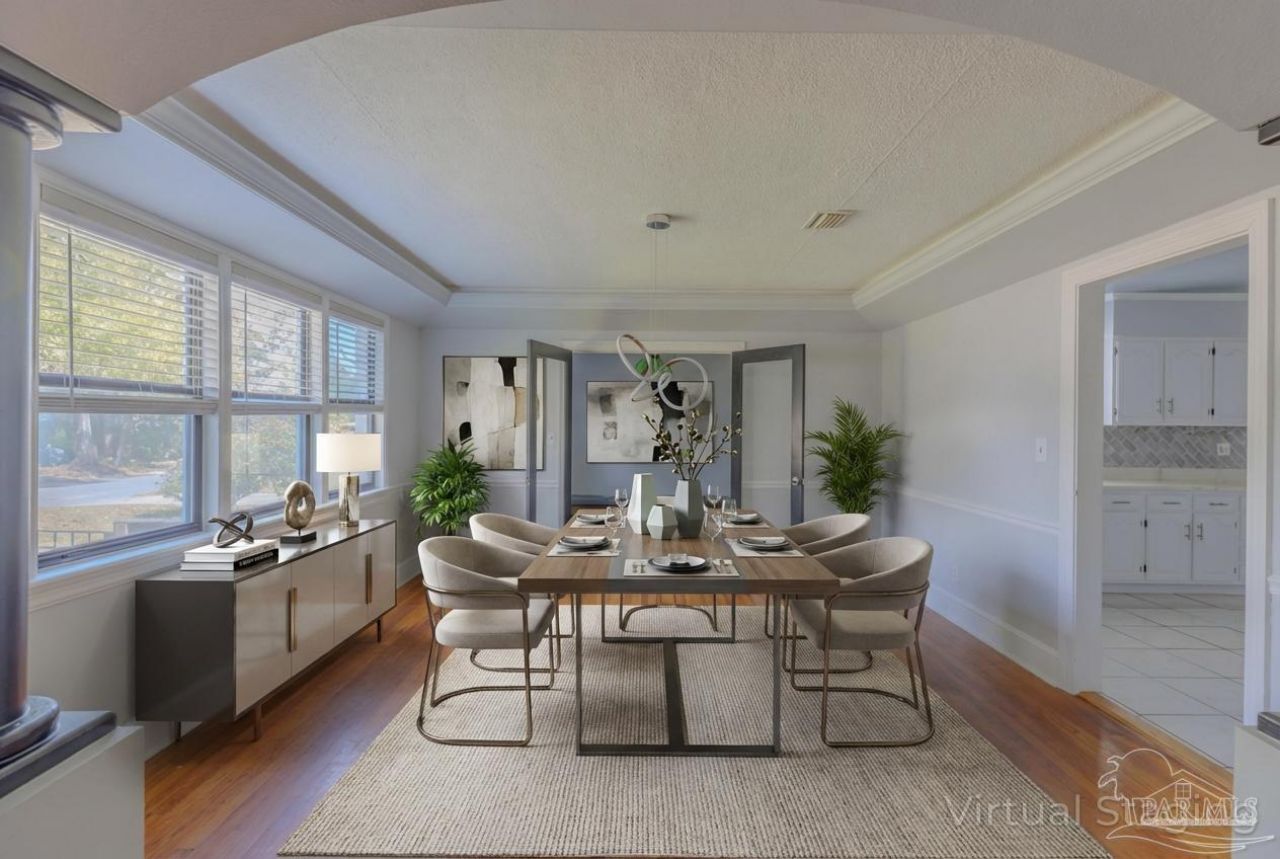 *First photo is virtually landscaped* This classic white-painted brick East Hill home blends modern convenience and 1940s charm! Featuring three bedrooms, two full bathrooms, original wood flooring, and plenty of space for a pool and/or ADU, this home is located just seven blocks from Bayview Park and four blocks from Bayou Texar. Seller is replacing all windows, HVAC system, and providing a clear WDO report for the new owner! The living room features a fireplace and elegant archway into the dining room. French doors separate the dining room from a separate mudroom and entrance. Off the dining room is a large kitchen with gas range, refrigerator,...read more