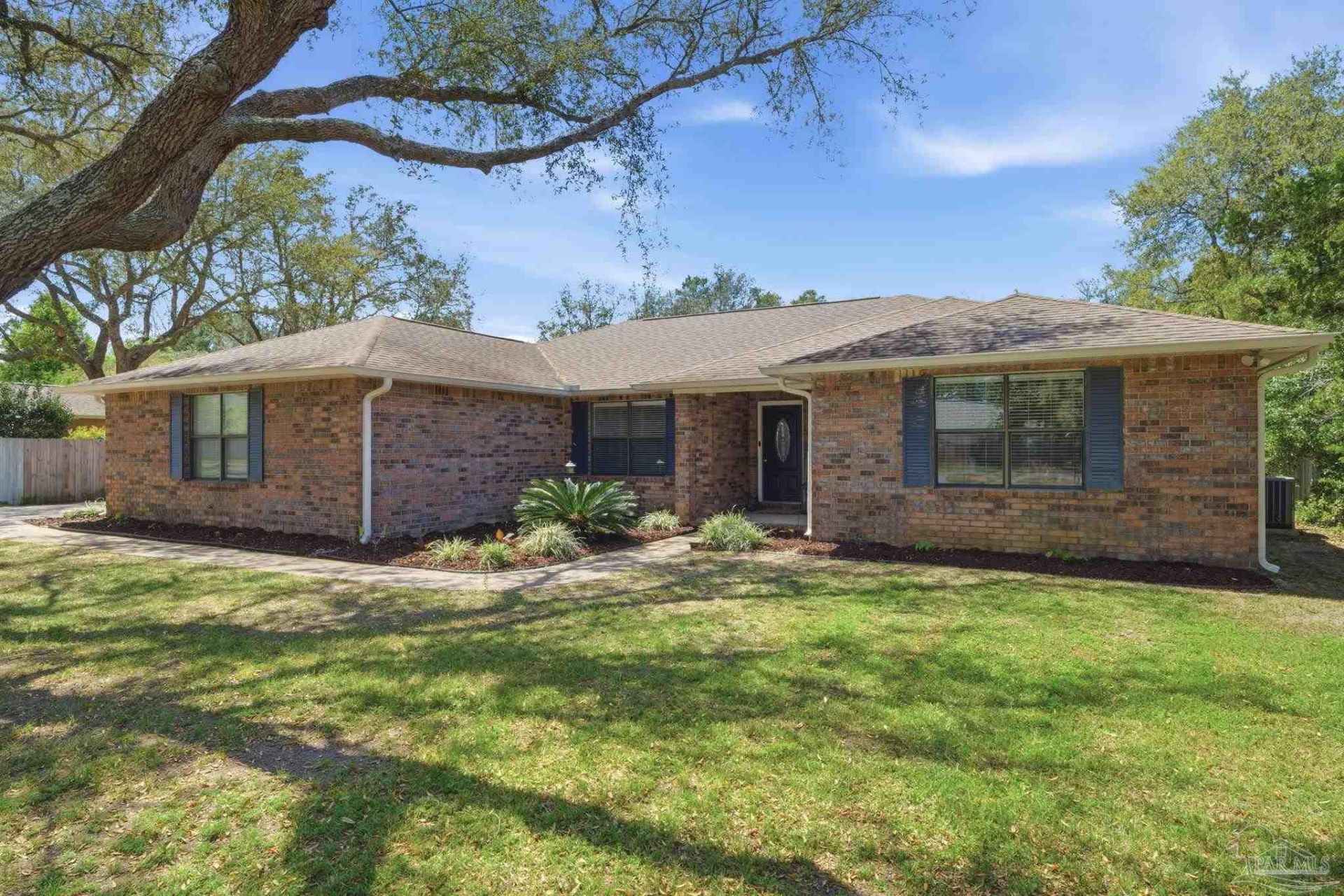 Welcome to this charming 3 bedroom, 2 bathroom brick home nestled in the heart of Navarre's most desirable neighborhoods. Tucked back just steps away from the green of the Hidden Creek Golf Course, this Holley By The Sea home offers over 2,000 SqFt of living space and is situated on an almost half acre lot with an extended driveway with side entry 2 car garage and a fully fenced in backyard with double gate entry. Inside, you'll find a split floor plan with an open concept main living space. The kitchen offers a breakfast nook with bay window overlooking the backyard, all black and stainless steel appliances, updated cabinetry, gorgeous granite...read more