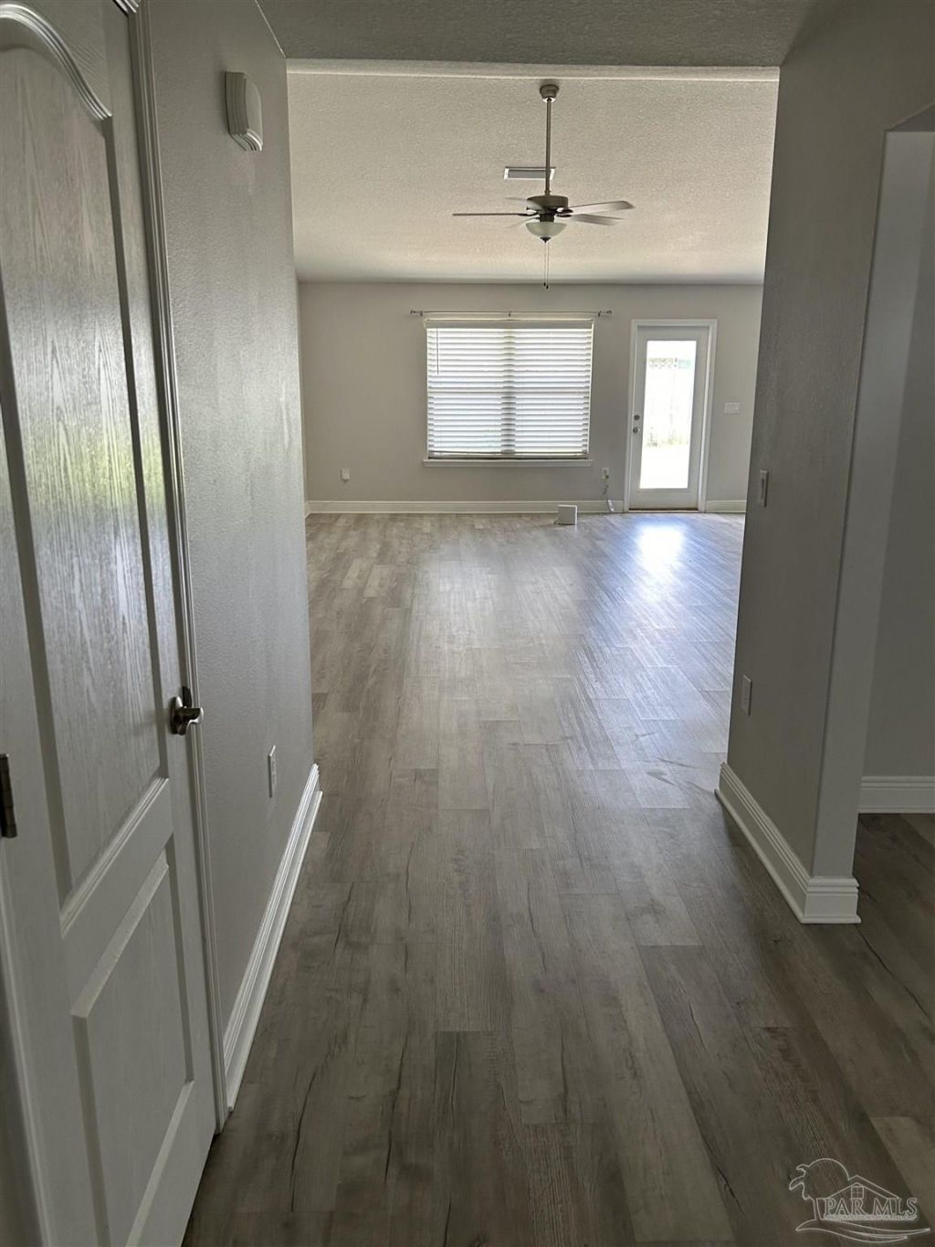 Easy access to interstate, bases & shopping! Open floor plan. Wood-look vinyl plank flooring in main living areas with carpet in bedrooms. Great room with cathedral ceiling, ceiling fan & plant ledge. Breakfast nook off kitchen plus formal dining room. Fully equipped kitchen with large island & pantry. Split master suite with ceiling fan, double vanity, garden tub & walk-in closet. Two guest bedrooms share a Jack-n-Jill bath. Ceiling fans in all bedrooms. Inside laundry. Privacy fenced backyard with large open patio. Sprinkler system. Small dogs considered with owner approval