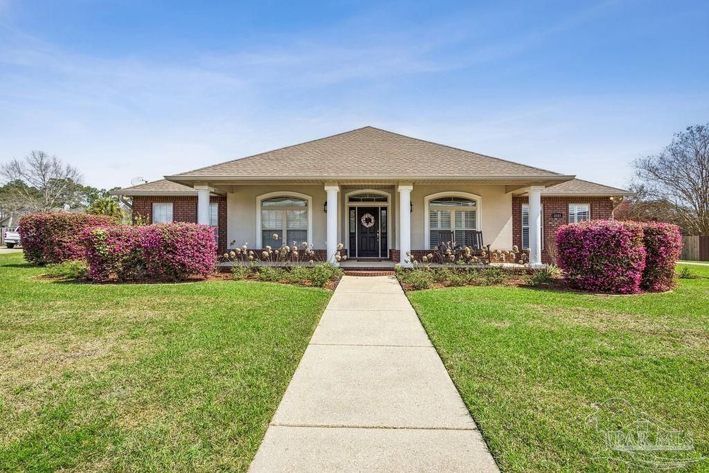 Welcome to this stunning Custom French Creole brick home in the highly sought-after Laurelwood Subdivision of Pace, FL. Perfectly designed for entertaining, this spacious residence features an open floor plan and a huge kitchen with abundant cabinet space, walk-in pantry, elegant travertine countertops, and stainless steel appliances. The large family room impresses with double tray ceilings, accent lighting, and a ceiling fan, creating a warm and inviting atmosphere. Enjoy the charm of custom plantation shutters throughout most of the home and a versatile study/formal dining room with hardwood floors and a bright window with transom. The...read more