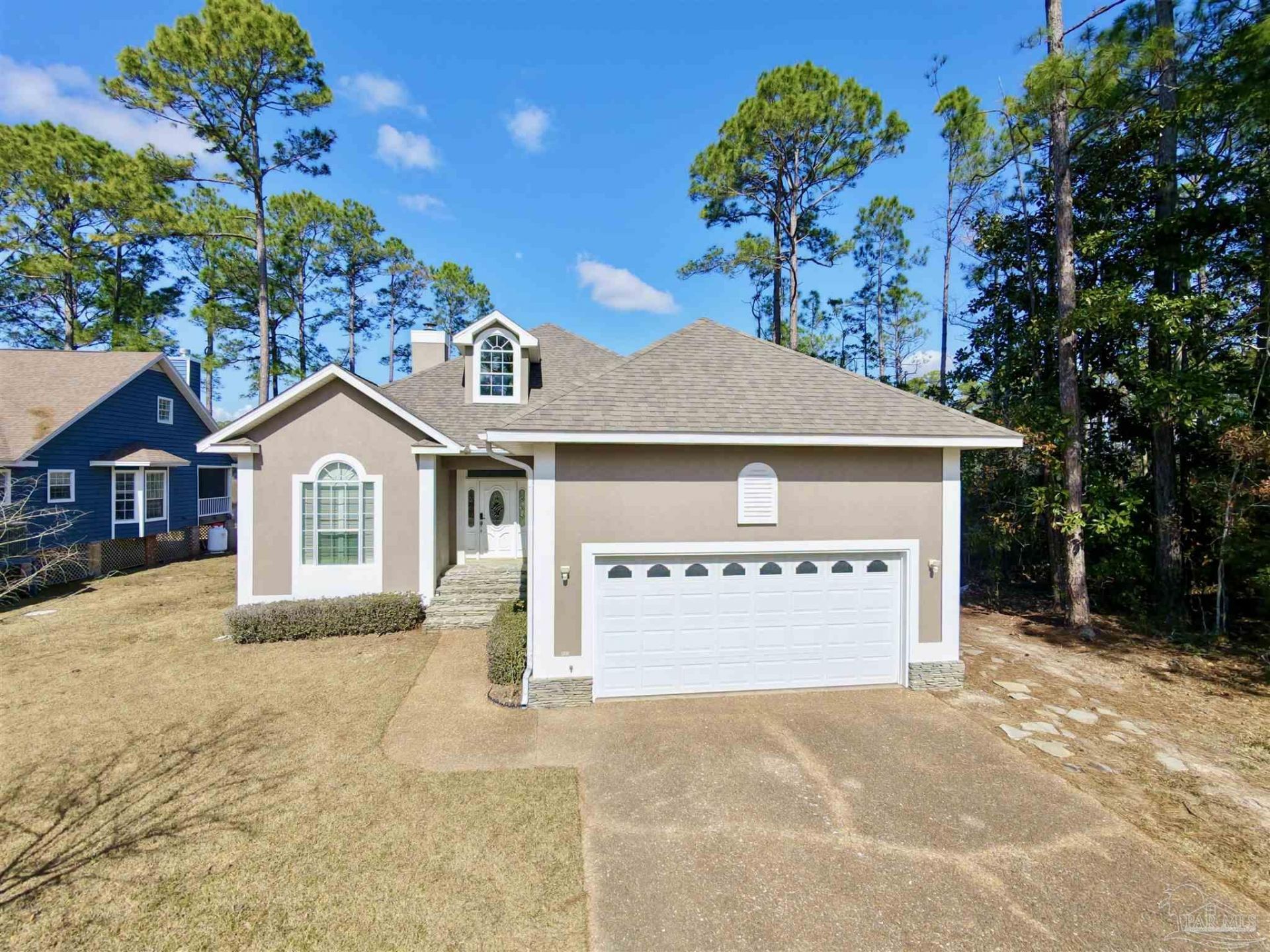 You feel it the second you walk in. The front door opens and Escambia Bay stretches out in front of you, framed by sawgrass and sky, like the house was built around the view.. because it was. The foyer welcomes you with vaulted ceilings and marble floors and from there the view of the bay follows you everywhere: the living room, kitchen, dining room, even the primary bedroom. This custom-built 3-bed, 2-bath home offers 1,963 square feet designed with intention and care, shaped by an owner who truly loved it. Trees were thoughtfully cleared to create a peaceful backyard that feels private and expansive, while a full irrigation system keeps...read more