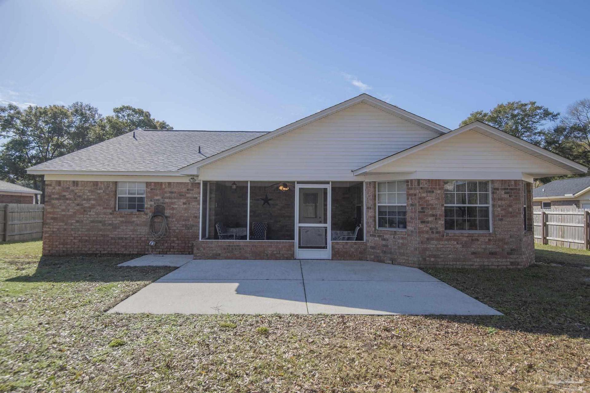 Lovely home in popular Briarcliff in the heart of Pace but off the busy thoroughfare. On a Cul de sac street, this terrific floor plan offers an exceptionally large kitchen and dining area that allow plenty of room for 2 cooks and plenty of space for family dining and guests to enjoy. Abundant wood cabinetry, breakfast bar and natural light from large bay window. There is a cozy and inviting family room with fireplace (capped off at the roof..no chimney), vaulted ceilings that extend to the kitchen. Split bedroom plan. Main suite features spacious bath with double vanities, separate shower and garden tub, 2 oversized closets. 2 additional...read more