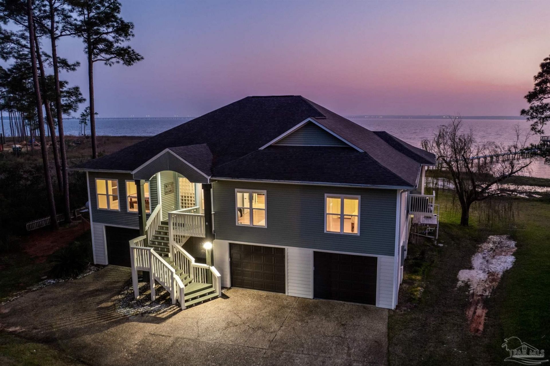 Beautiful 4 bedroom 3 bath 3,305 sqft home quietly situated at the end of a cul-de-sac on 0.90 acres of bay-front property with breathtaking panoramic views of Escambia Bay! Conveniently located just minutes from I-10 going into Pensacola. You'll enjoy a 3-car garage, a covered and enclosed, heated lap pool with 180-degree views of the bay, and vast amounts of surrounding space, perfect for entertaining family and friends. The kitchen comes equipped with ample cabinet storage, granite countertops, an island with a breakfast bar suitable for at least six people, a built-in wine rack, and stainless appliances. The primary suite is suitable...read more