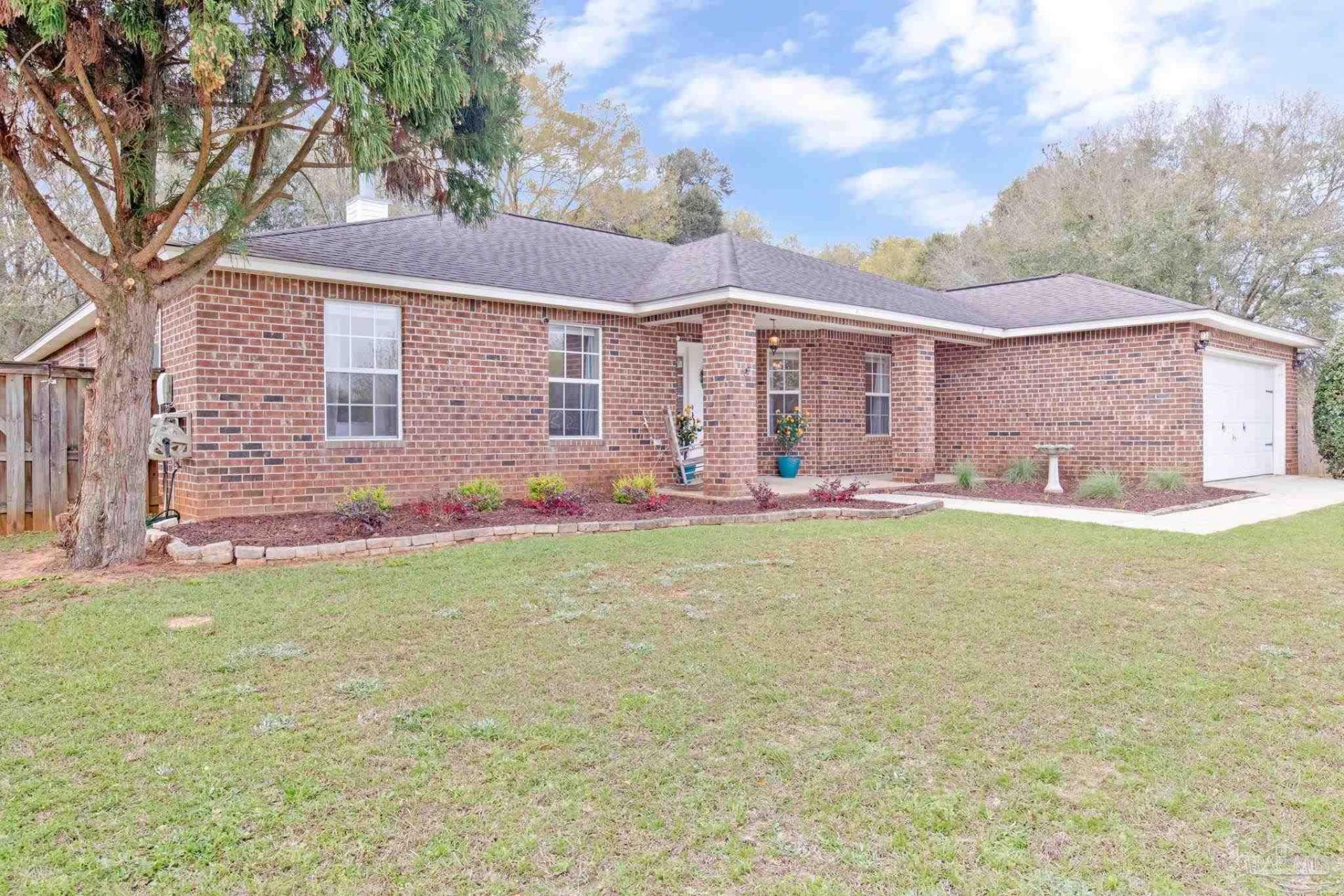 Welcome to 4685 Hilarita Cir! An inviting 4 bedroom, 2 bath brick home with an inground pool, nestled on an oversized lot in Pace's desirable Tiburon West community. This home has been fresh paint and front yard landscaping! Perfect blend of comfort, functionality, and outdoor living. Inside, you'll find a flowing layout with generous living areas, a split-bedroom floor plan, and vaulted ceilings that add volume and light. The kitchen includes stainless steel appliances (2021) and a breakfast nook that overlooks the backyard. The spacious primary suite features a walk-in closet, garden tub, and separate shower. Step outside to your private...read more