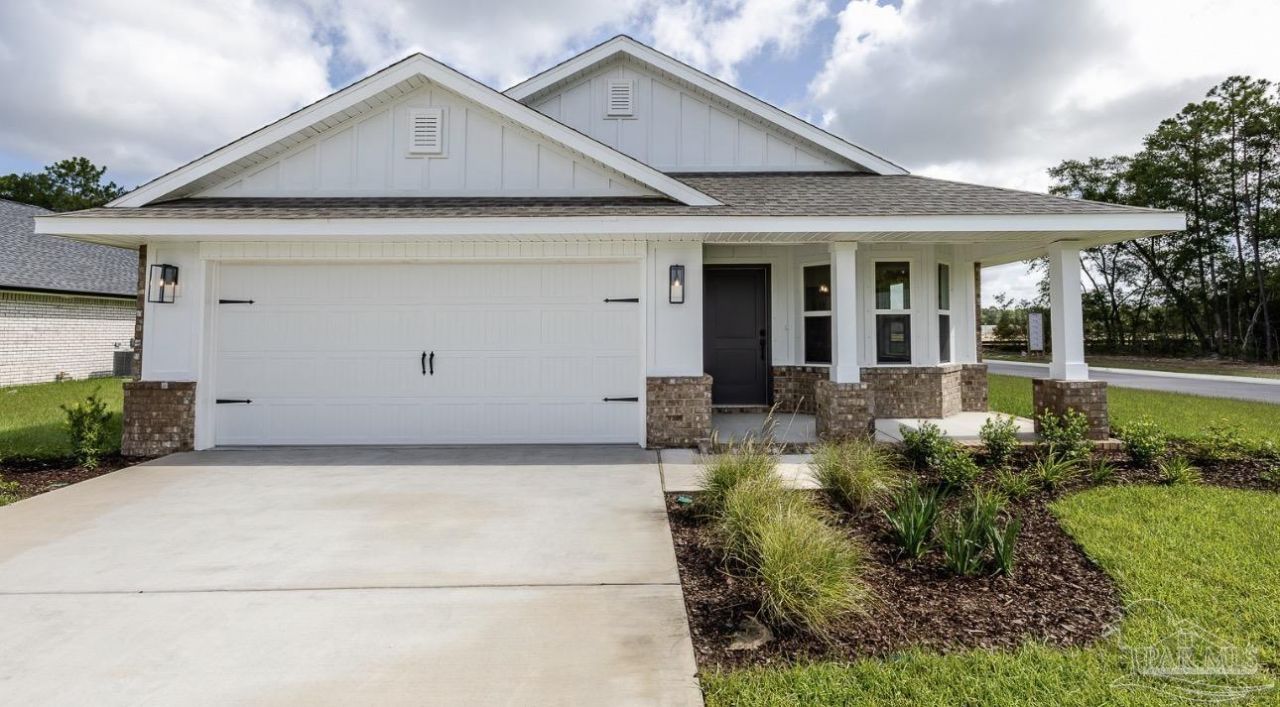 Est Completion Summer 2026. Welcome to HIDDEN PINES by Adams Homes. Located just 30 minutes to Navarre Beach, with close proximity to schools, shopping and much more. This home is 3-sided brick with Hardi design front, 2 car automatic garage, sprinklers with timer, and a sodded yard with a landscaping package. Some upgrades that are being added to this home include granite/quartz countertops in kitchen and bathrooms, Puretec LVP flooring everywhere with carpet only in bedrooms, craftsman style elevation, and a separate walk-in tiled shower and garden tub in the master bathroom. PHOTOS are for representation only. From a previously built home...read more