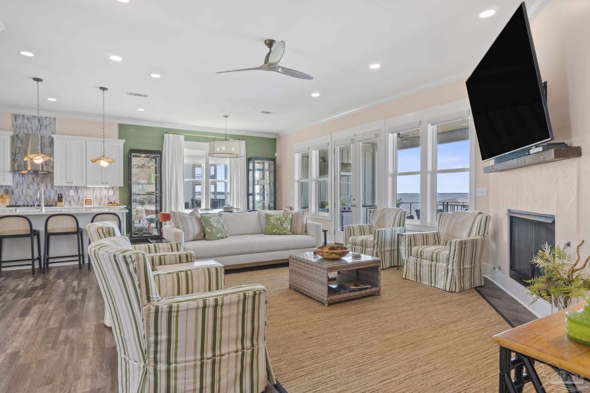 Experience the best of coastal living in this exquisite Bayfront home, just a 5-minute drive from the sugar-white sands of Perdido Key. Perfectly designed for both relaxation and entertaining, this residence blends elegant interiors with resort-style outdoor amenities. Step outside to an expansive 1,100+ sq. ft. covered balcony overlooking sweeping views of Perdido Bay, complete with an outdoor kitchen, fireplace, TV, and fenced backyard with sprinkler system. Enjoy your private dock with a covered sitting area or take a dip in the heated and chilled saltwater gunite pool. Inside, the chef's kitchen shines with quartz countertops, gas range,...read more