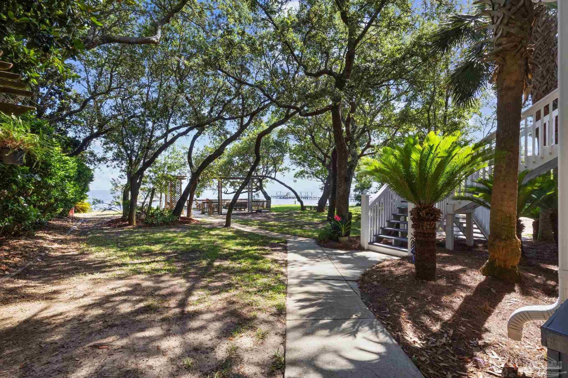WATERFRONT PARADISE WITH PANORAMIC VIEWS - Discover the ultimate in coastal living in this masterfully crafted waterfront home offering exclusive Santa Rosa Sound frontage and sweeping vistas of the protected National Seashore. Built with extraordinary structural strength-metal-reinforced concrete block, steel beams, and impact-rated storm glass. Framed by oak and palm trees, a private white sand beach, protective seawall, and dock with boathouse, 3 heavy capacity lifts, and swings for fishing, wildlife-watching, or sunset lounging. Outdoor showers-2 dock+H/C at house. A public boat launch is just a block away. Multiple covered expansive...read more