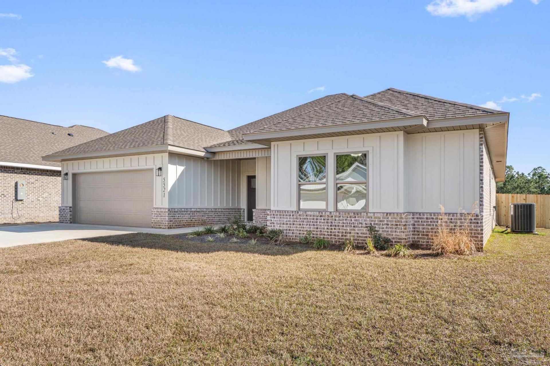 Affordable luxury can be yours! Beautiful BRAND NEW 4 bedroom/2.5 bath modern craftsman style home in Gulf Breeze ready for occupancy now. Attractive brick & hardie-board exterior with covered front porch invites you inside to a wide open floor plan with high ceilings throughout & many upgraded features. Luxury vinyl plank flooring throughout the entire home - no carpet here! Spacious living room with custom built-in entertainment center opens right into the kitchen and dining area. Gorgeous and thoughtfully designed kitchen features white shaker cabinets, sparkling Quartz countertops, tile backsplash, center island with breakfast bar,...read more