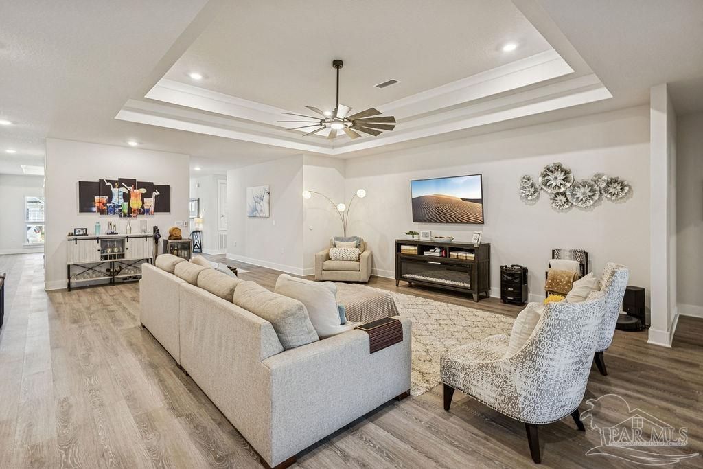 Robinson Estates in Pace, FL - where luxury living meets community living at its finest. Nestled among estate-sized lots, this neighborhood offers tranquil living with its gated pool, inviting sidewalks, and beautifully maintained common areas. Step inside this single-story McKenzie floorplan and feel instantly at home. With over 3,000 sq ft, this spacious layout features 5 bedrooms and 3 full baths, providing generous room for family, guests, or flexible living arrangements. Curb appeal stands out with a Craftsman-style Hardie-board front, paired with a three-side brick exterior and a welcoming front porch. Inside, a grand foyer opens...read more