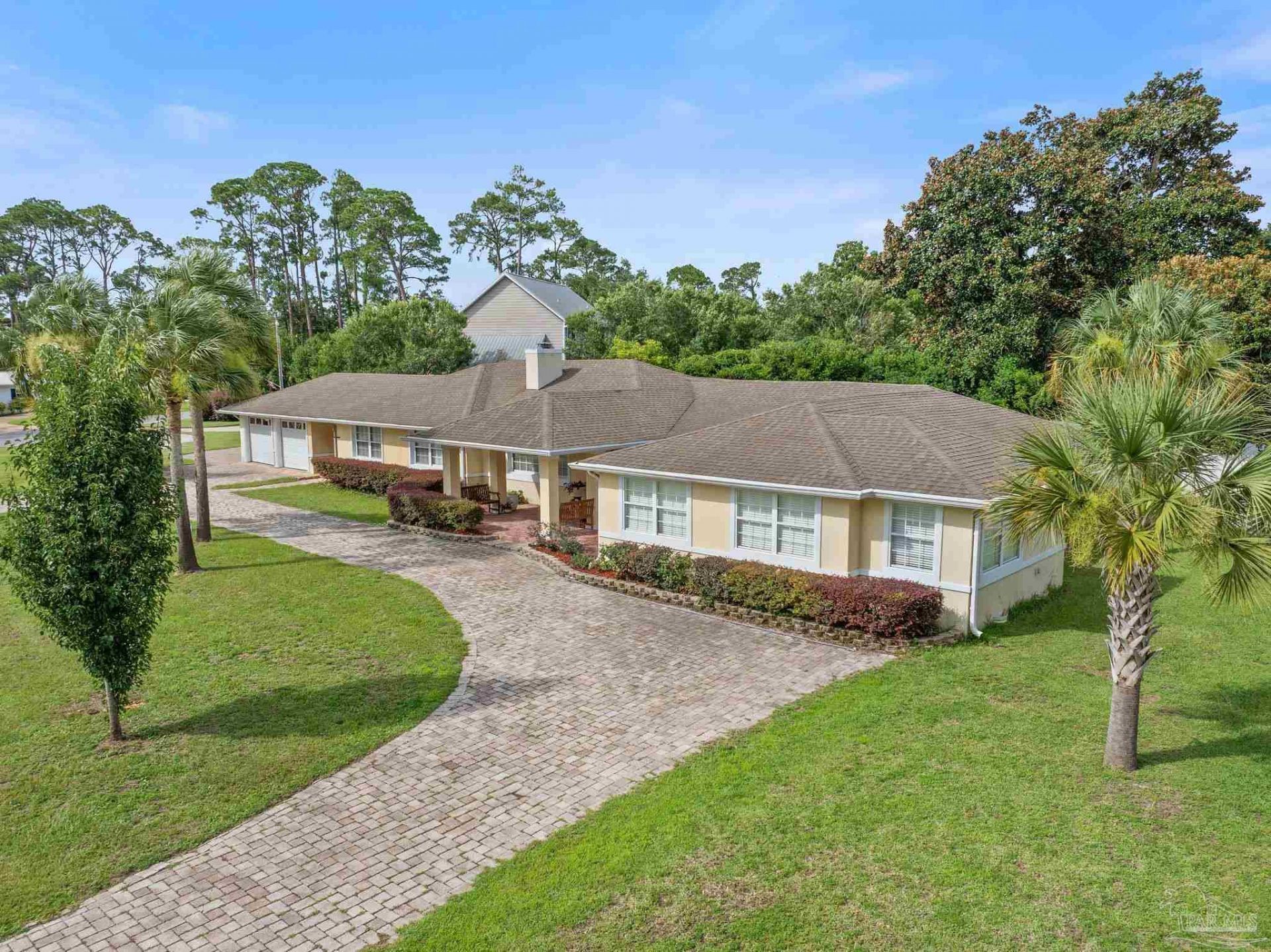 Located in the quiet, waterfront community of Star Lake within the sought-after Pensacola Country Club area, this 4-bedroom, 2.5-bath home offers a blend of character, space, and thoughtful updates. Significant 2000 additions and upgrades expanded the home to include a spacious primary suite with cathedral ceilings, abundant natural light, and room for a private sitting area. The ensuite bath features classic black-and-white tile, a whirlpool tub, separate shower, and dual vanities. That same update also added a two-car garage and durable stucco exterior. Inside, the split floor plan showcases original hardwood and tile flooring, crown molding,...read more