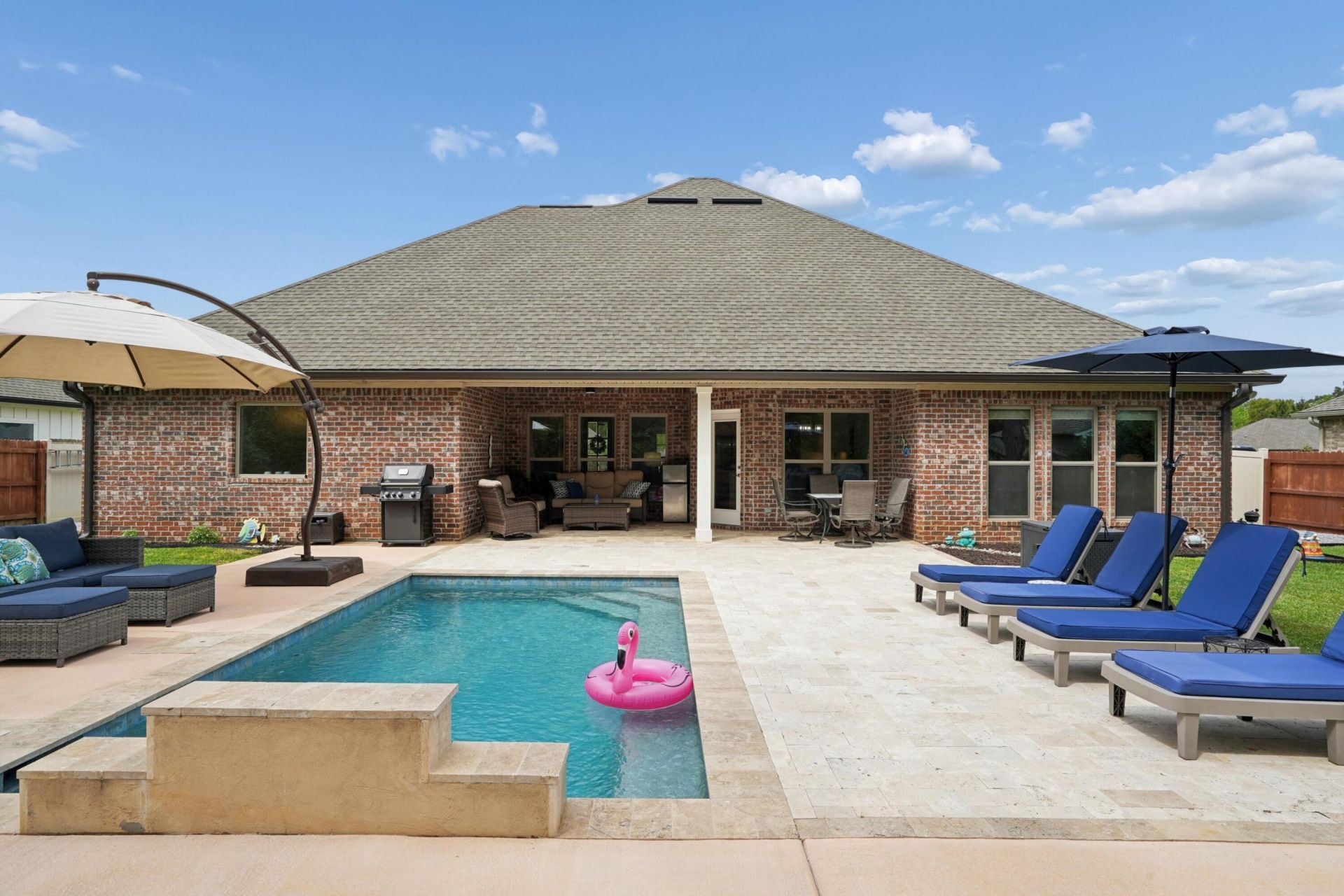 Welcome to this charming Craftsman-style Holly floorplan in sought-after Whitley Estates! This stunning pool home boasts 2,628 sq ft, 4 bedrooms, 3 baths, a generator, and sits on a spacious half-acre lot. Enjoy beautiful curb appeal with an 8-ft mahogany door, custom shutters, and bronze lighting. Inside features 11-ft ceilings, a formal dining room, and a living area with a 42-inch gas fireplace. Upgrades include quartz/granite counters, custom cabinetry, wood shelving, and EVP flooring. The primary suite has a tray ceiling, spa-like bath, soaking tub, double vanity, and walk-in closets. The chef's kitchen has a gas cooktop, wall oven,...read more