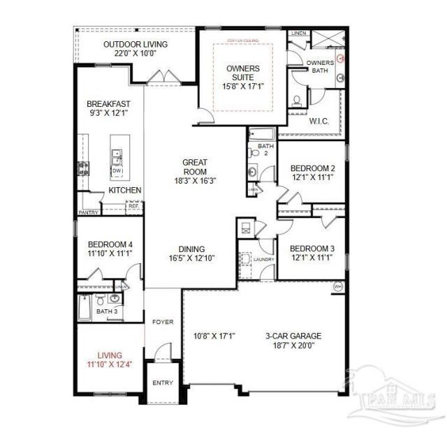As you walk into your newly purchased Navarre home, you will notice your formal living room off the foyer. As you continue in there is first appearance of a guest hall that is accompanied by your third bath and your fourth spare bedroom in its own living quarters for ultimate privacy. The formal dining, great room, kitchen with breakfast combo is all an open concept area that is perfect for those nice dinners or spacious enough for everyone to spread out. This is where you are also seeing your gracious sized outdoor living space. Your owner's suite is off the great room in the back corner of the house for privacy. Your ensuite owner's bathroom...read more