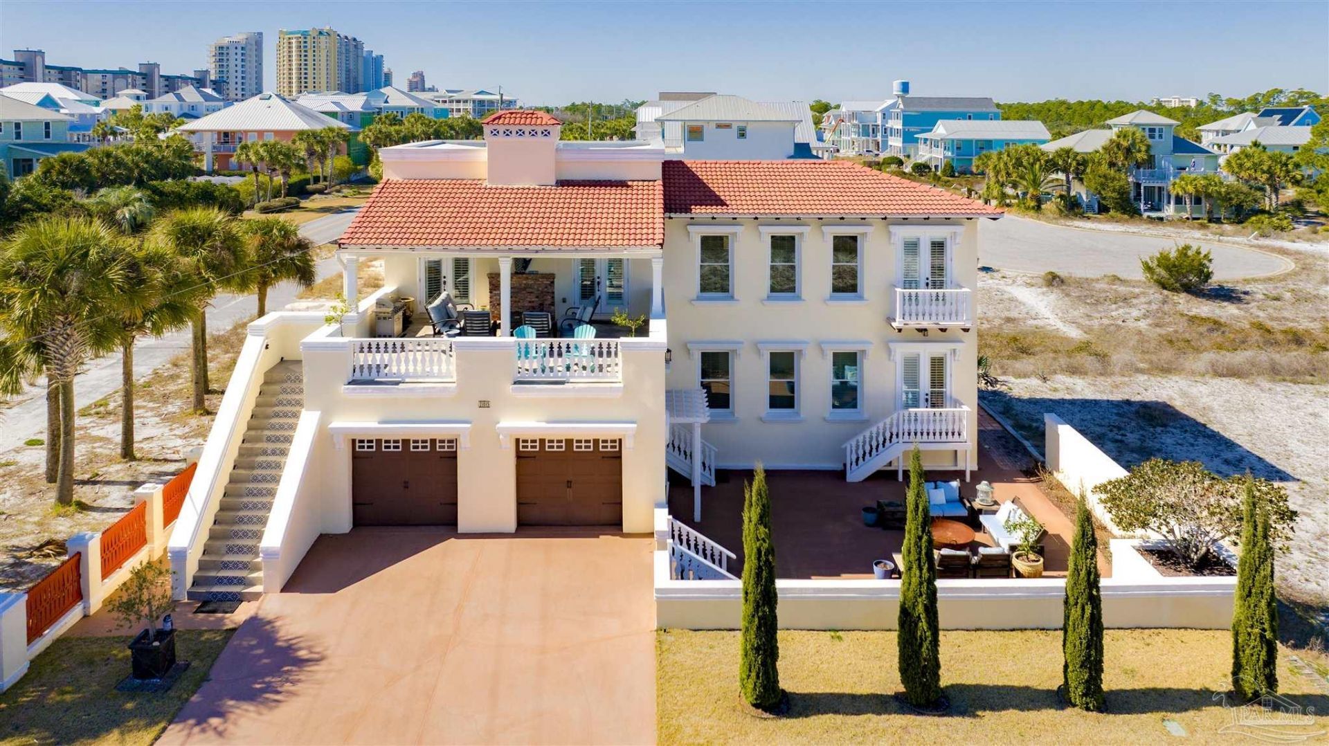 DISCOVER THE ULTIMATE MEDITERRANEAN-STYLE RETREAT IN THE HEART OF PERDIDO KEY, IDEALLY SITUATED NEAR THE GULF ISLANDS NATIONAL SEASHORE! Located in the gated, rent-restricted and low-density Reflections community, this fully furnished residence combines architectural elegance with coastal resilience, featuring a classic clay tile roof, hurricane-rated windows and ICF construction. The main level offers a soaring open floor plan where a cozy fireplace and a gourmet kitchen-complete with all-wood cabinets, granite countertops and backsplash, and a striking deep copper sink-create the perfect environment for entertaining. Descend the custom...read more