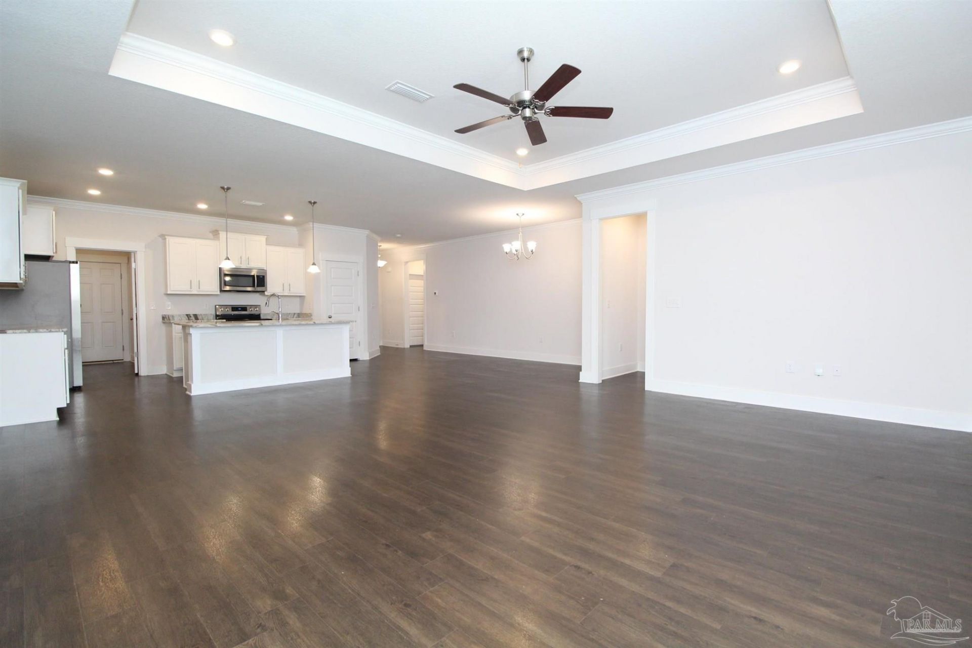 3-bedroom, 2-bathroom townhome located in Smith Station offering a low-maintenance lifestyle in a quiet setting. This home features a 2-car garage and a covered back patio. The open floor plan includes 9' ceilings throughout, with tray ceilings and crown molding accents in the main living areas, along with ceiling fans in the great room and primary bedroom. The kitchen is equipped with granite countertops and stainless steel appliances, including an electric stove, built-in microwave, and dishwasher. The primary suite is carpeted and includes a private bathroom with a soaking tub, separate shower, double granite vanity, and a walk-in closet....read more