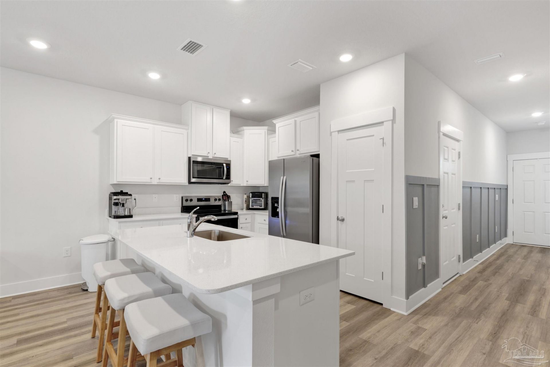 Welcome home to this adorable townhome located just off Davis Highway. If you've been looking for easy, comfortable living with a smart layout, this is it. The open concept main living area is bright and inviting, seamlessly connecting the kitchen, dining, and living spaces, ideal for both everyday living and entertaining. The kitchen features beautiful quartz countertops, white shaker cabinets, stainless steel appliances, and a spacious island that provides additional seating and prep space. There's plenty of cabinet and counter space, plus a convenient half bath downstairs for guests. Step outside to your private patio, perfect for morning...read more